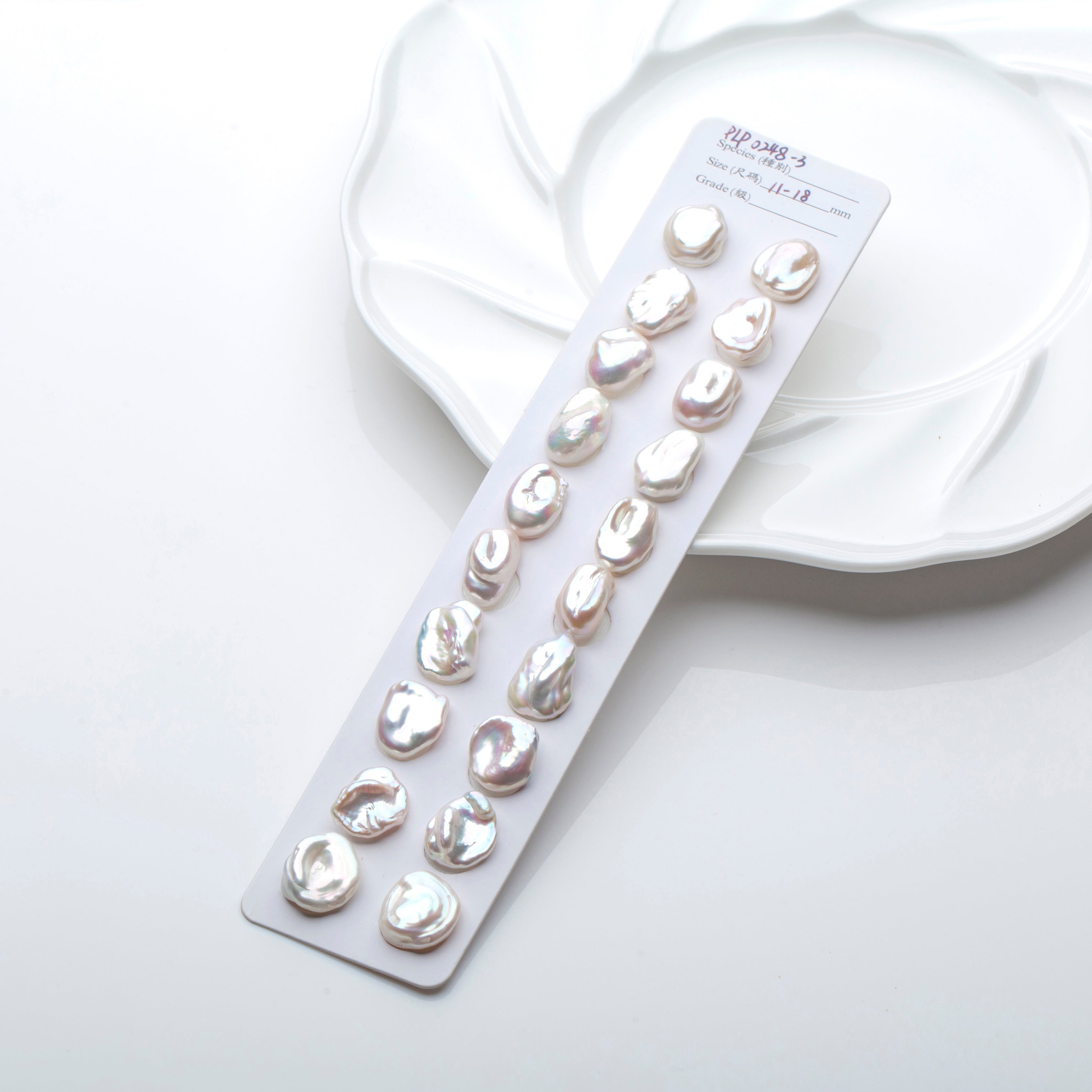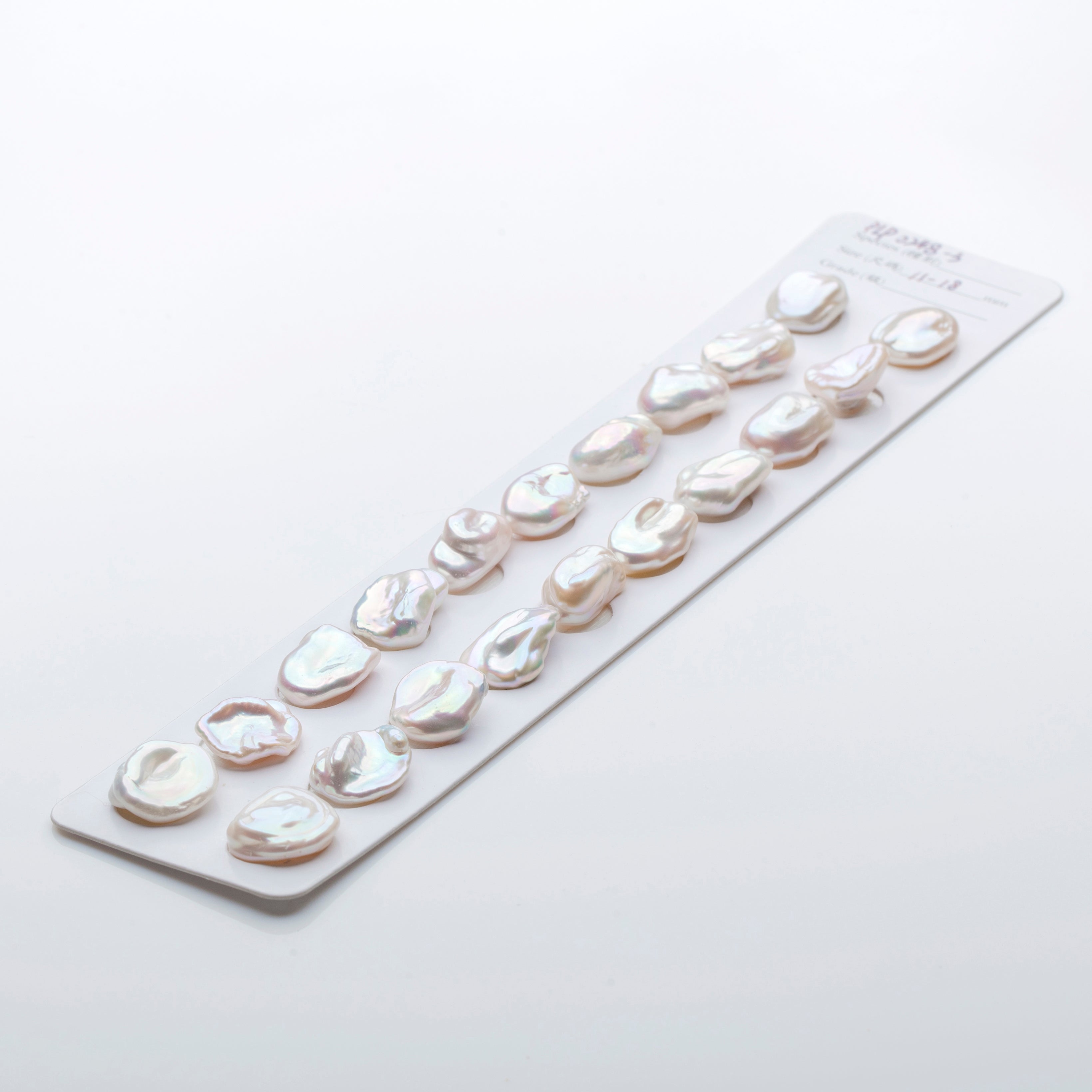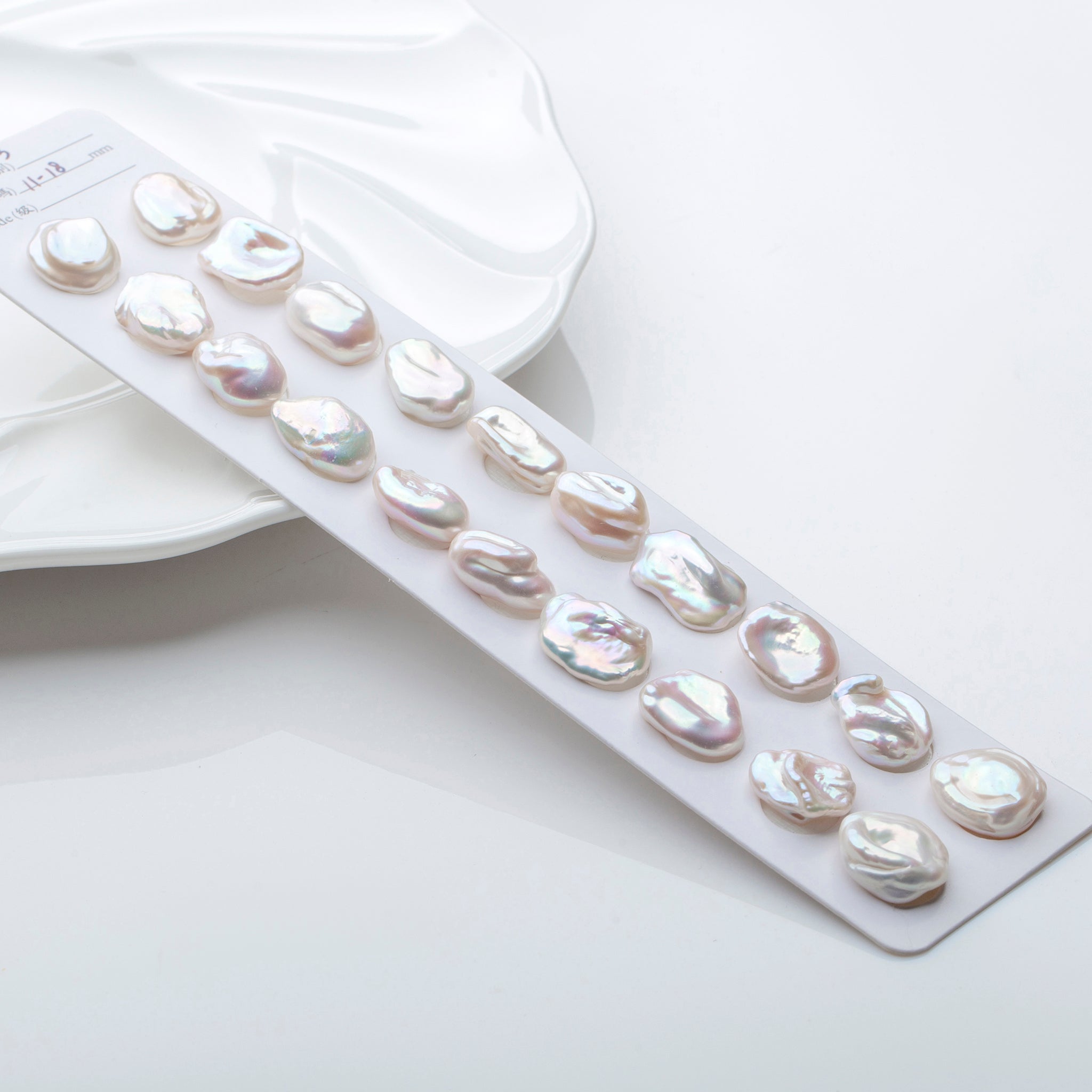 These 9-12mm/11-18mm irregularly-shaped Keshi freshwater pearls are of grade AAA and come in a beautiful white color. Create stunning earrings with these paired pearls, available for purchase in bulk.