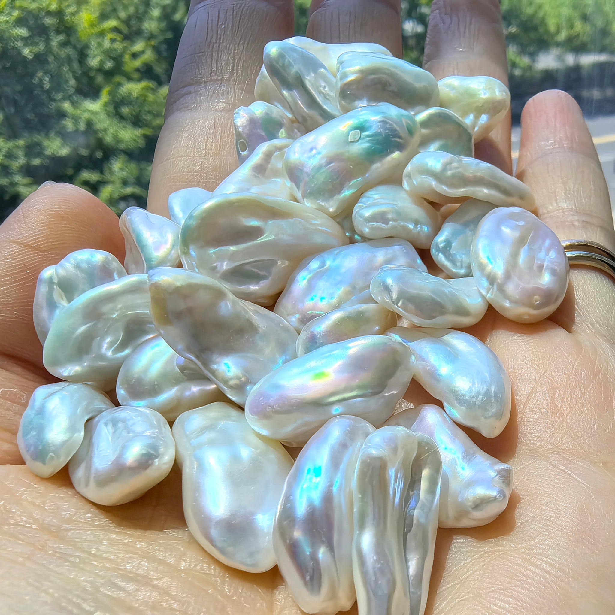 This 11-18mm size grade AAA keshi pearl has an irregular shape and a strong luster. It is a white color and is cultured in freshwater. It is available for wholesale purchase and can be bought in bulk quantities.