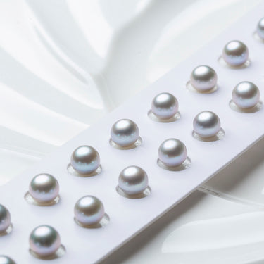 This 6-6.5mm/6.5-7mm AA Akoya paired pearl has a round shape and comes in silver grey color. It has a general luster and slight flaws, making it perfect for earrings. This is a cultured saltwater pearl that is sold wholesale and is supplied by a reliable Akoya pearl supplier.